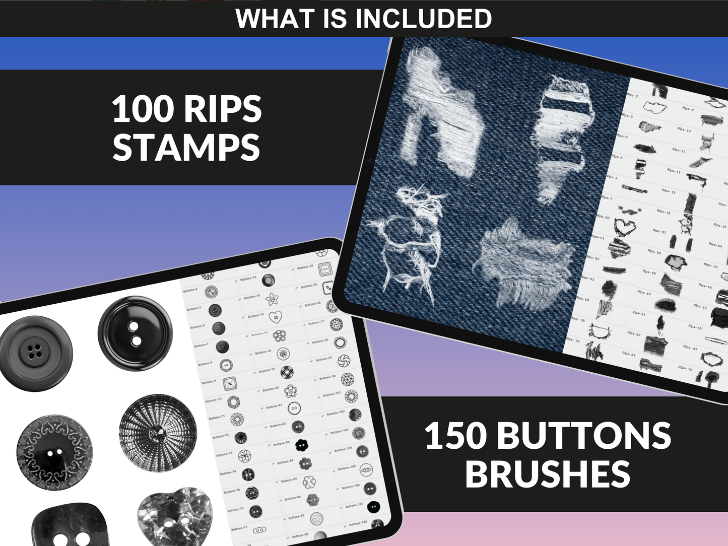 Close-up of rips and buttons from the FUPstudio Fashion Details Bundle for Procreate