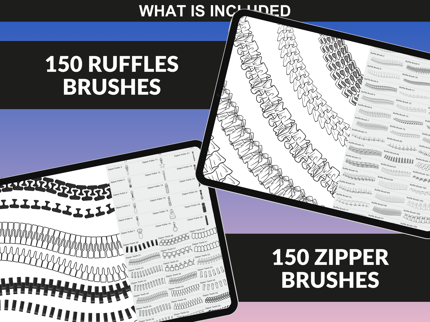 Ruffles, stitches, and fasteners from FUPstudio’s Fashion Details Bundle for Procreate