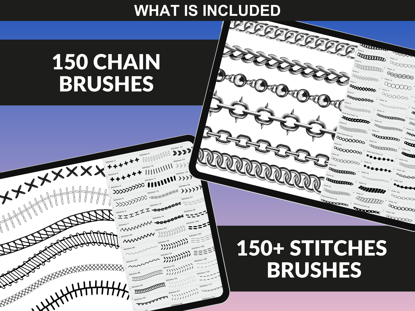 Realistic chain and stitches brush set from the FUPstudio Fashion Details Bundle