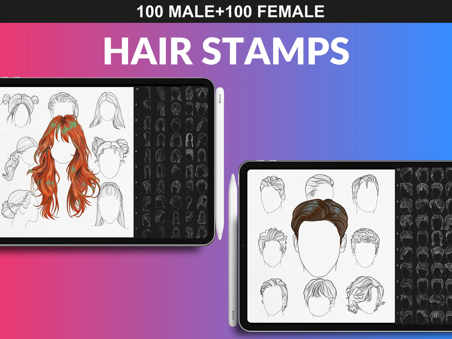 - 100 Male And 100 Female Hairstyles Brush Set & PNG Files