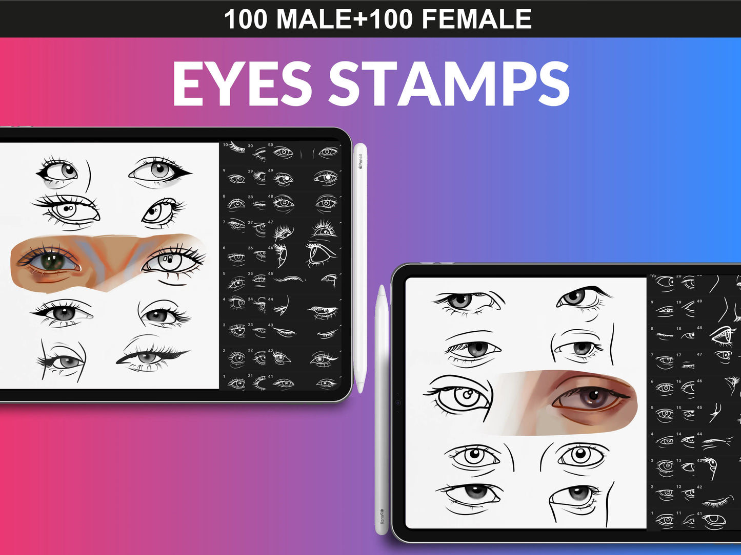 - 100 Male And 100 Female Eyes Brush Set & PNG Files