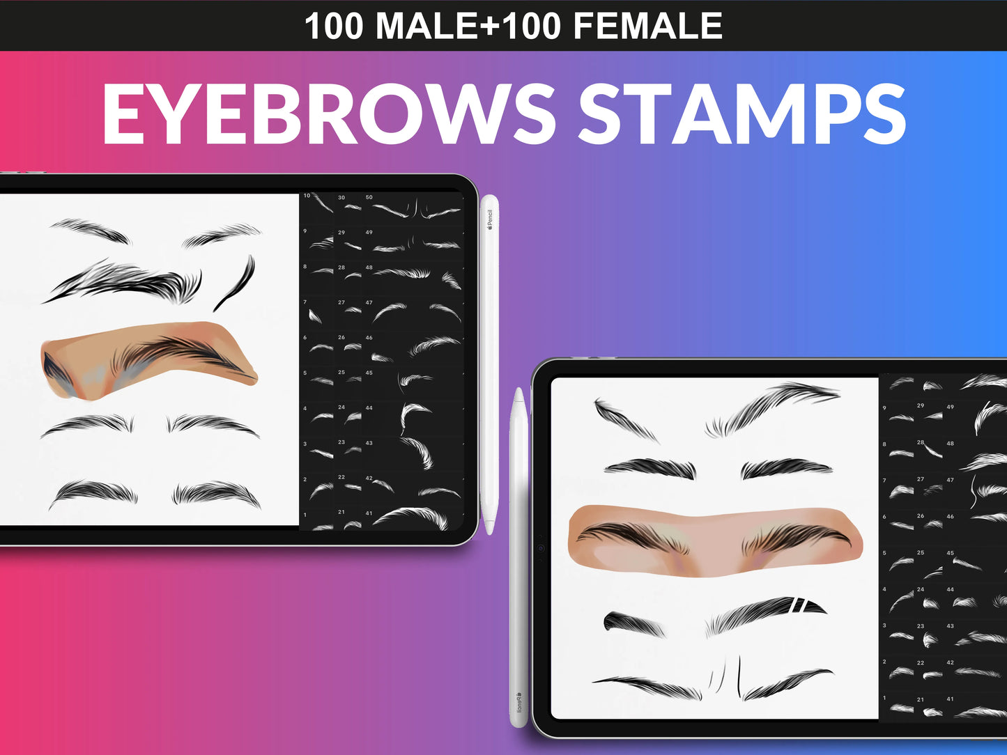 - 100 Male And 100 Female Eyebrows Brush Set & PNG Files