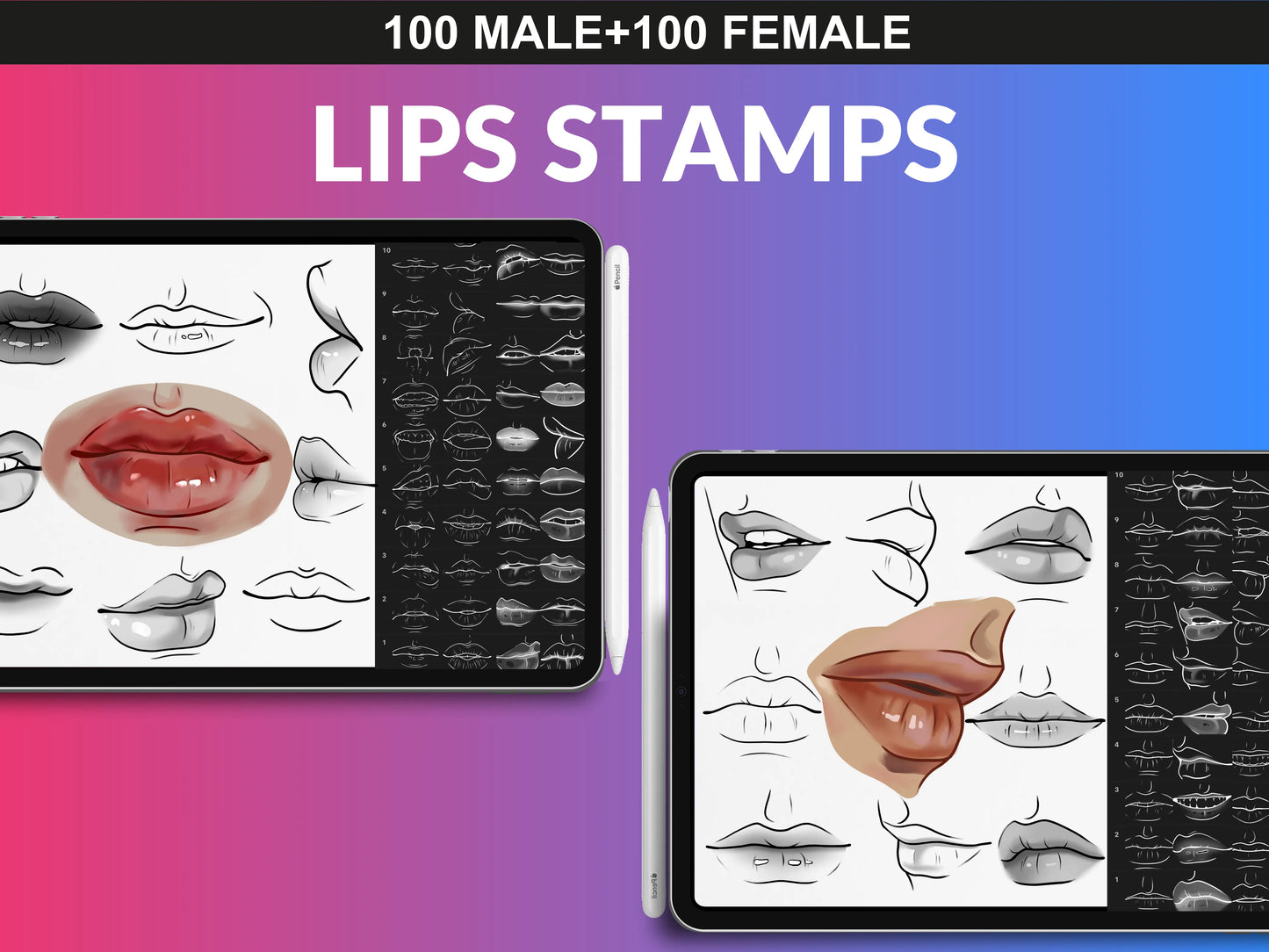 - 100 Male And 100 Female Lips Brush Set & PNG Files