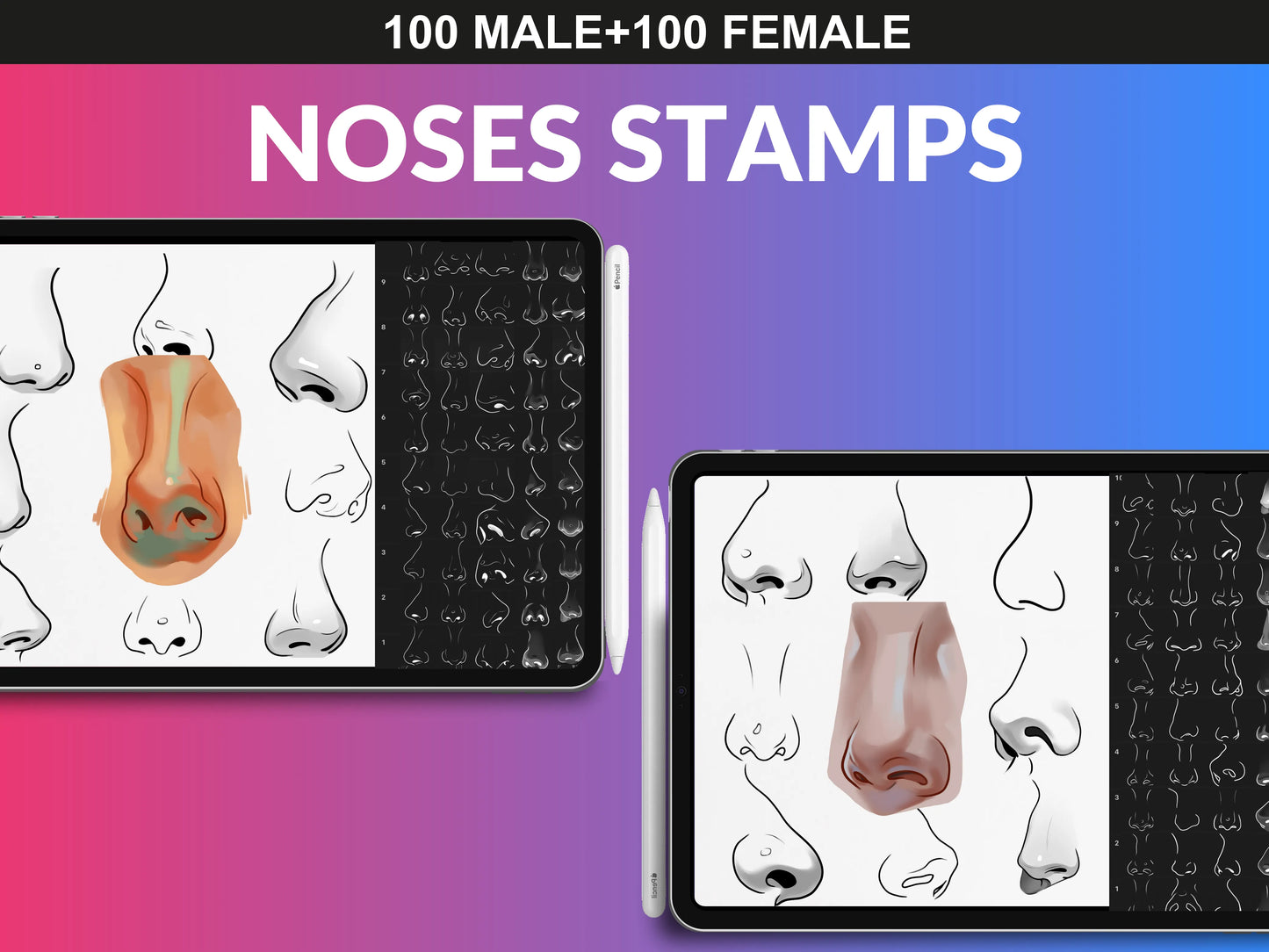 - 100 Male And 100 Female Noses Brush Set & PNG Files