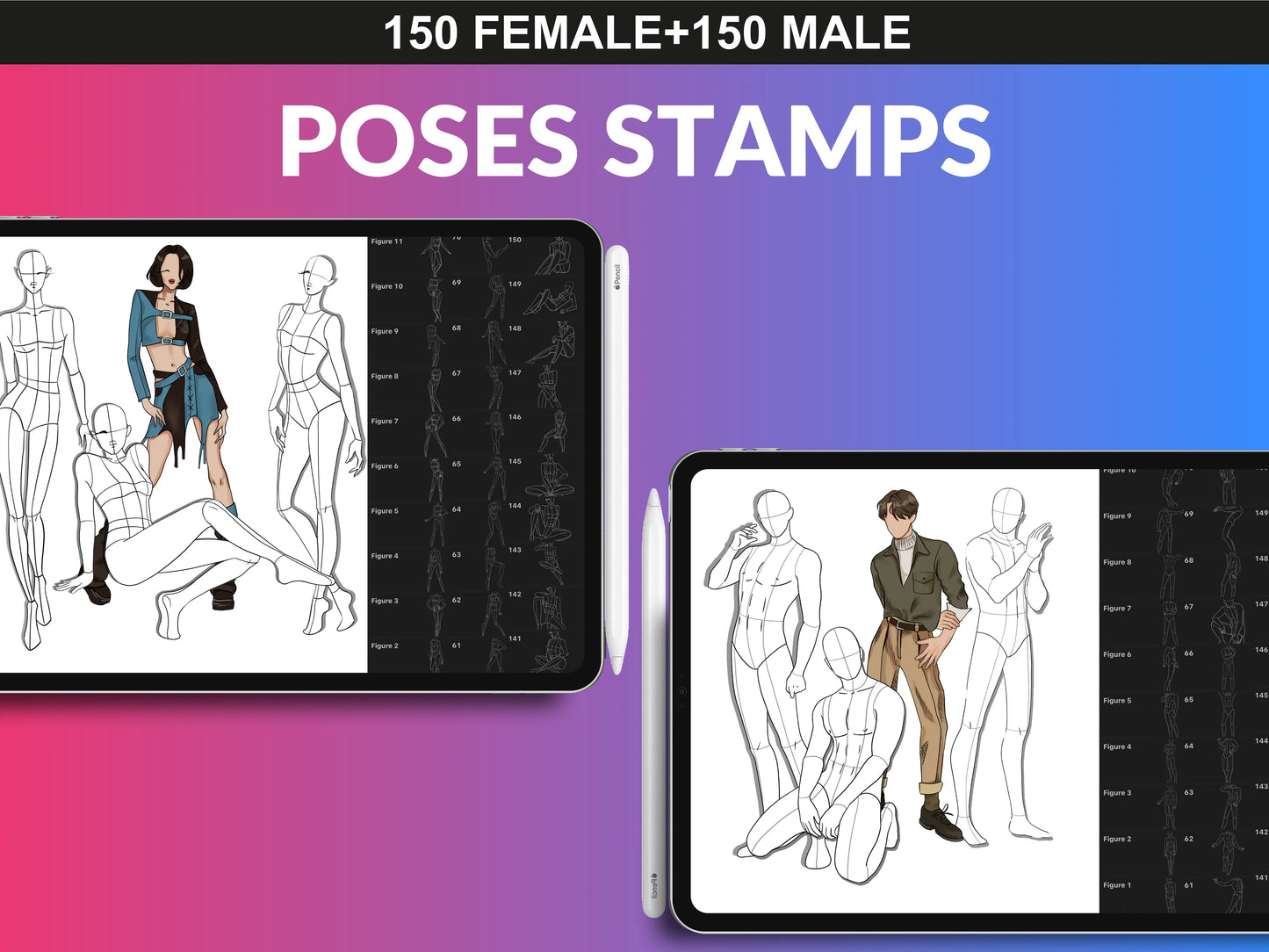 - 300 Female & Male Body Poses Brush Set & PNG Files
