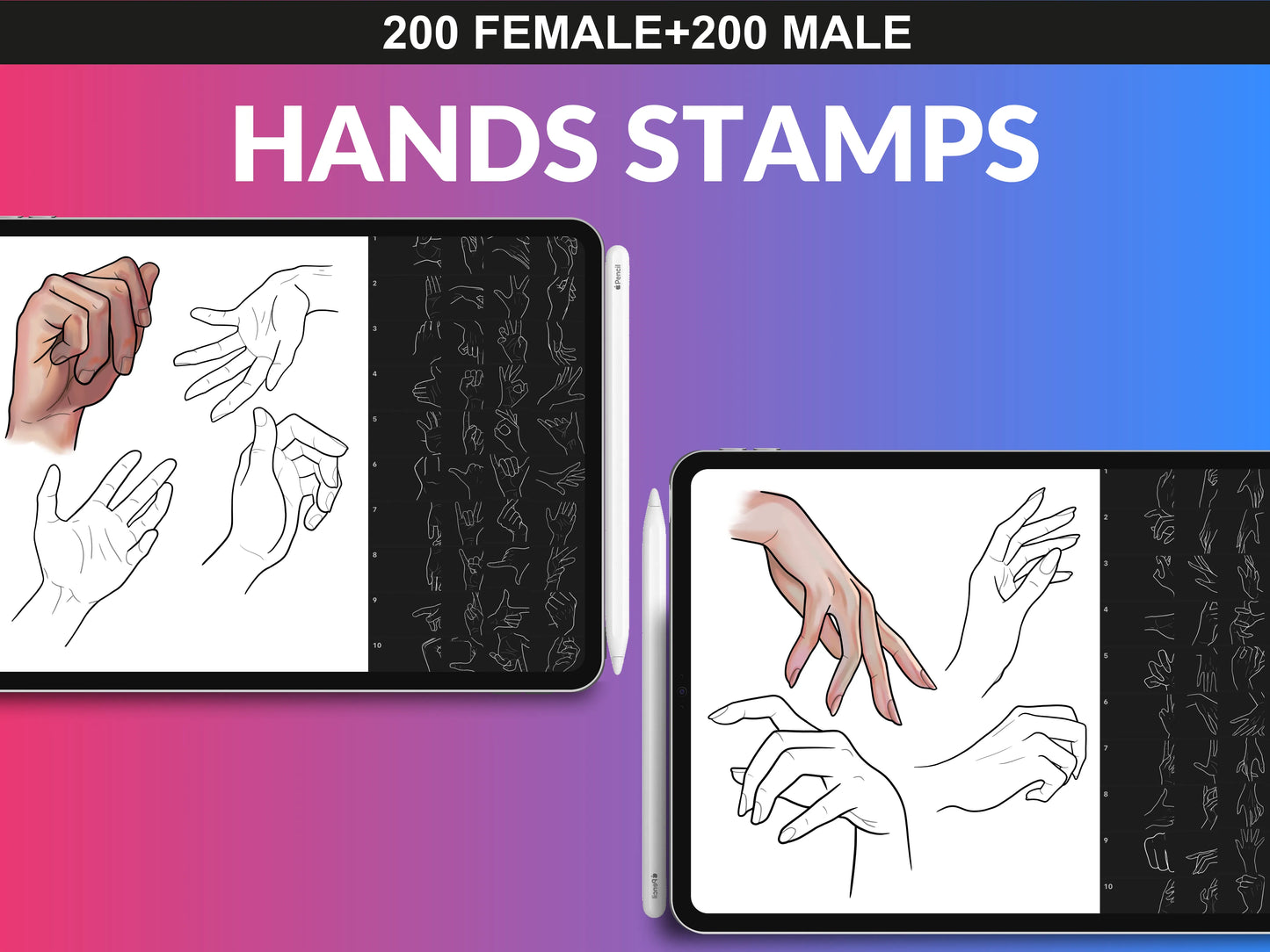 - 400 Female & Male Hands Brush Set & PNG Files