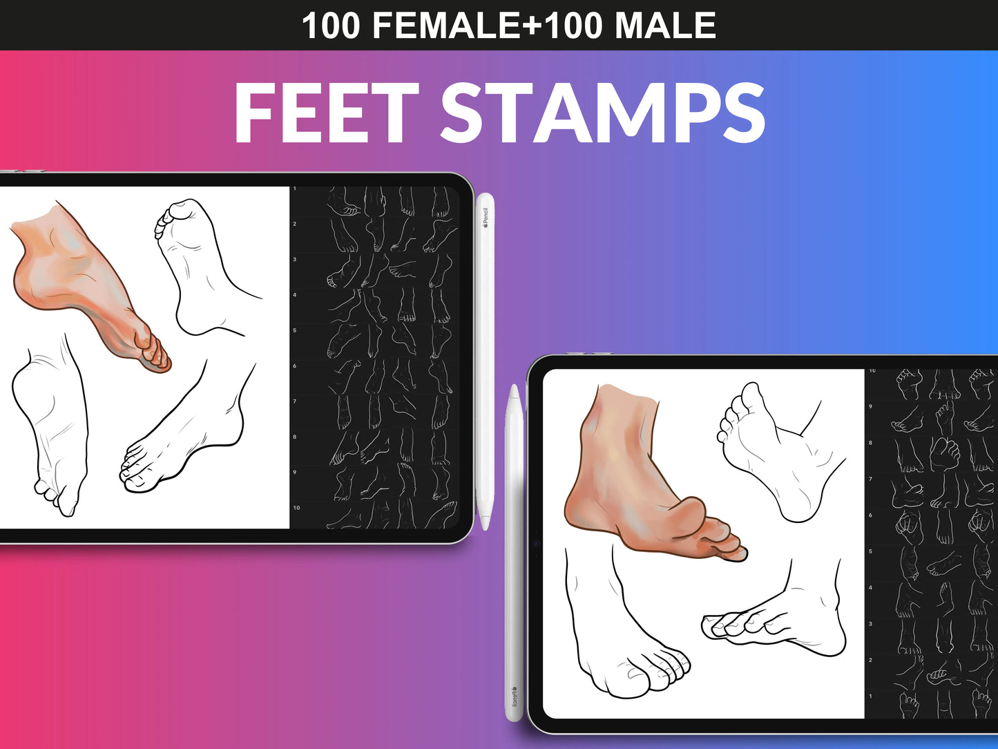 - 200 Female & Male Feet Brush Set & PNG Files