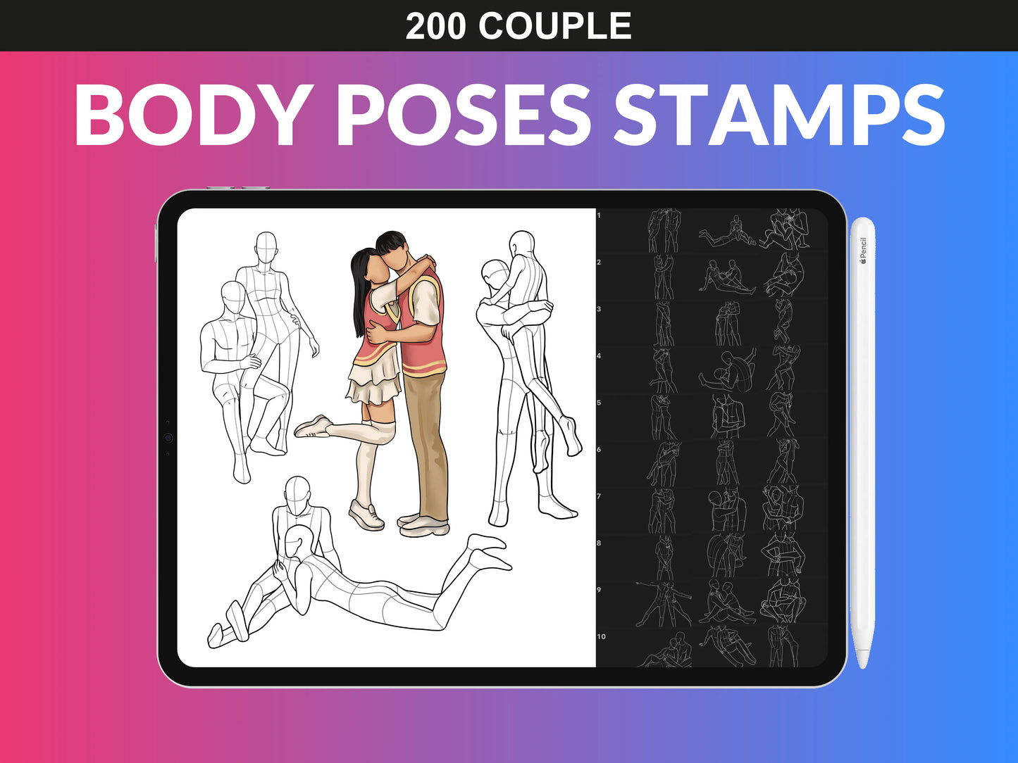 - 200 Couple Poses Poses Brush Set & PNG Files