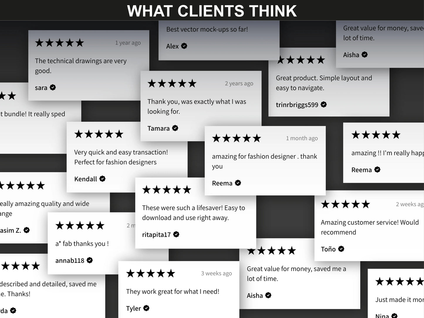 Customer reviews for FUPstudio’s Stitch Brushes bundle, highlighting positive feedback from fashion designers.