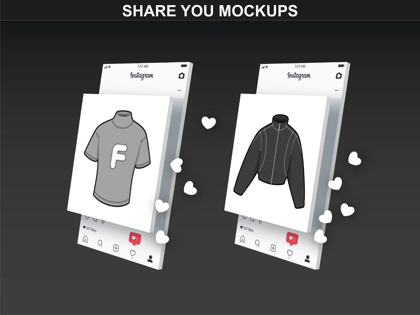 Social media preview of FUPstudio’s Stitch Brushes, demonstrating their use in garment mockups for Instagram.