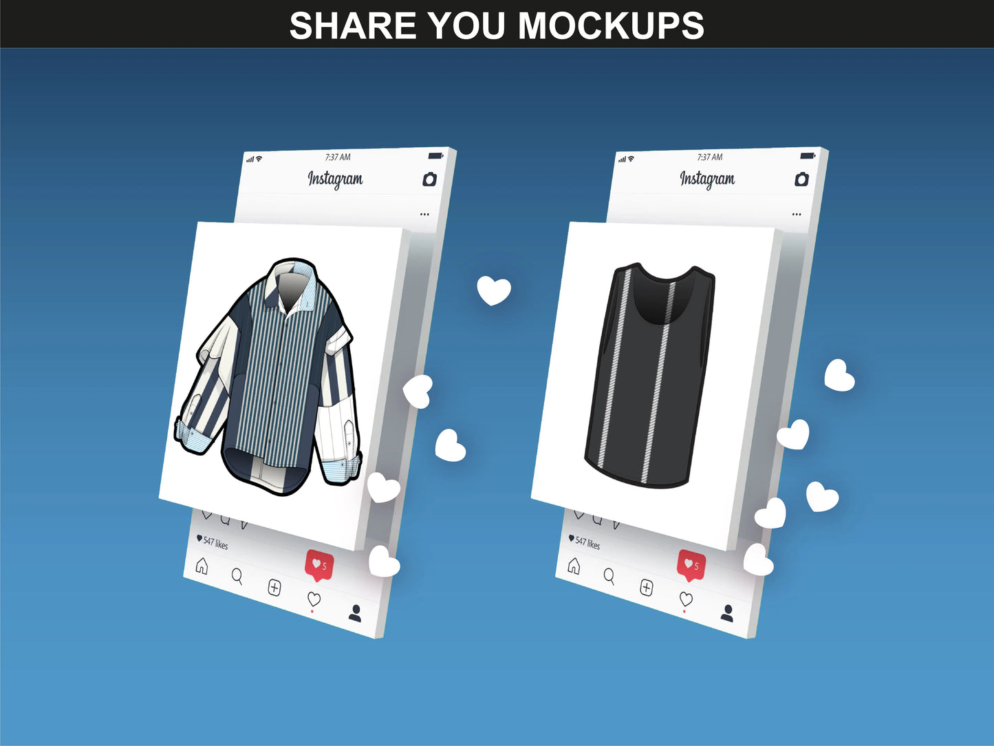FUPstudio Stripe Pattern Bundle applied to fashion mockups, showcased in Instagram-like templates.