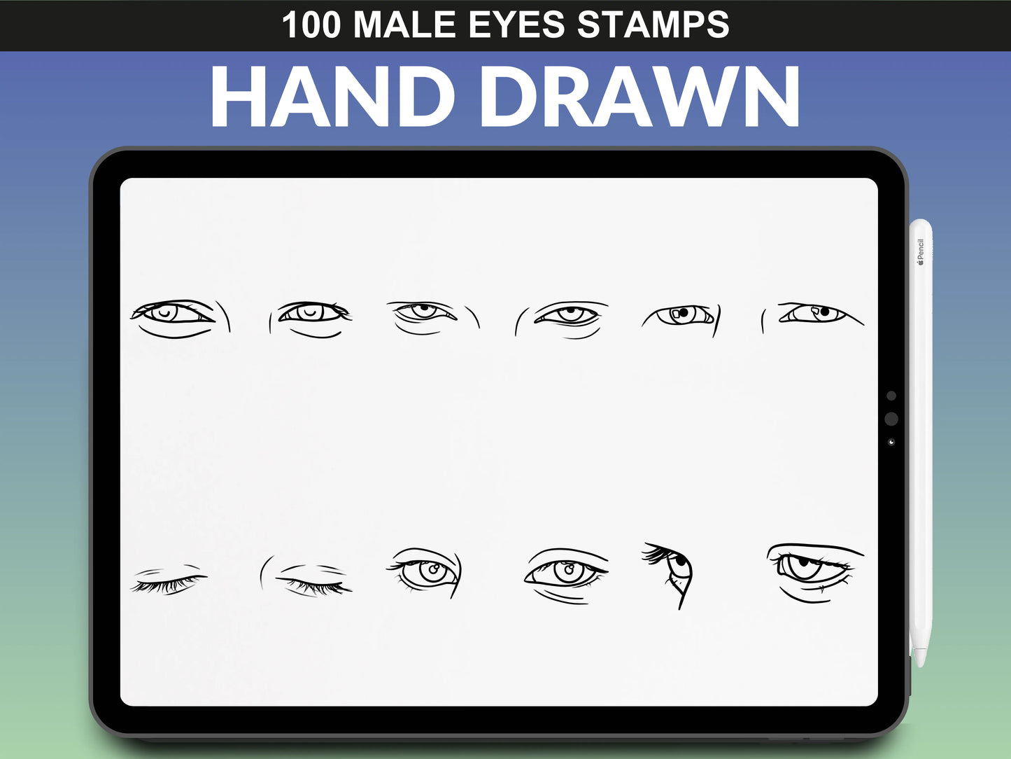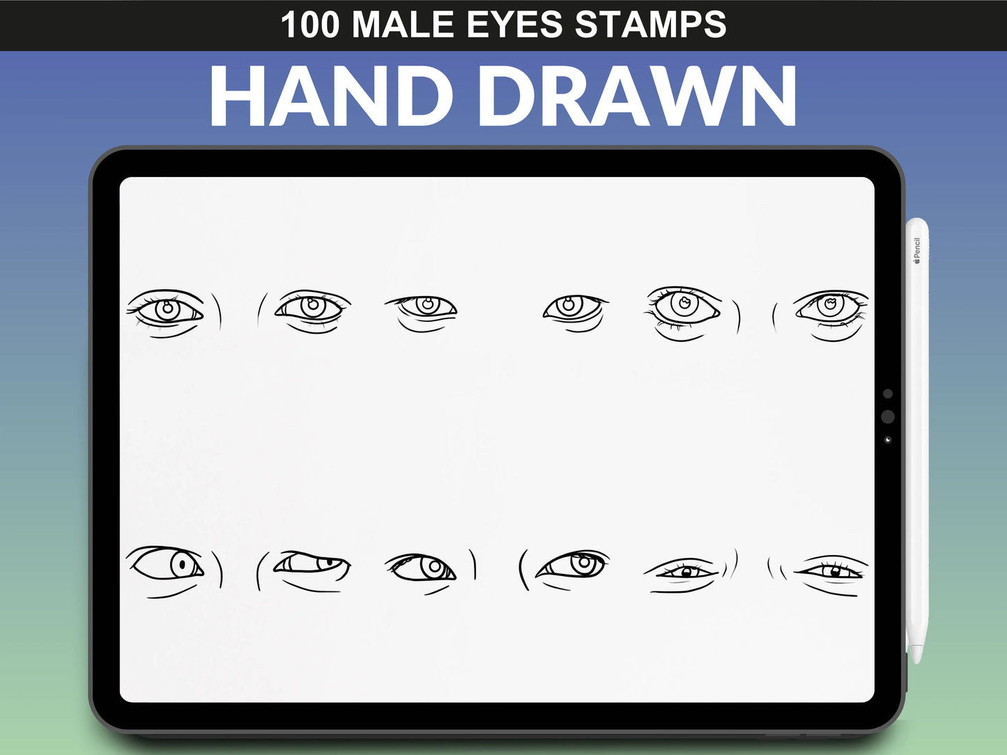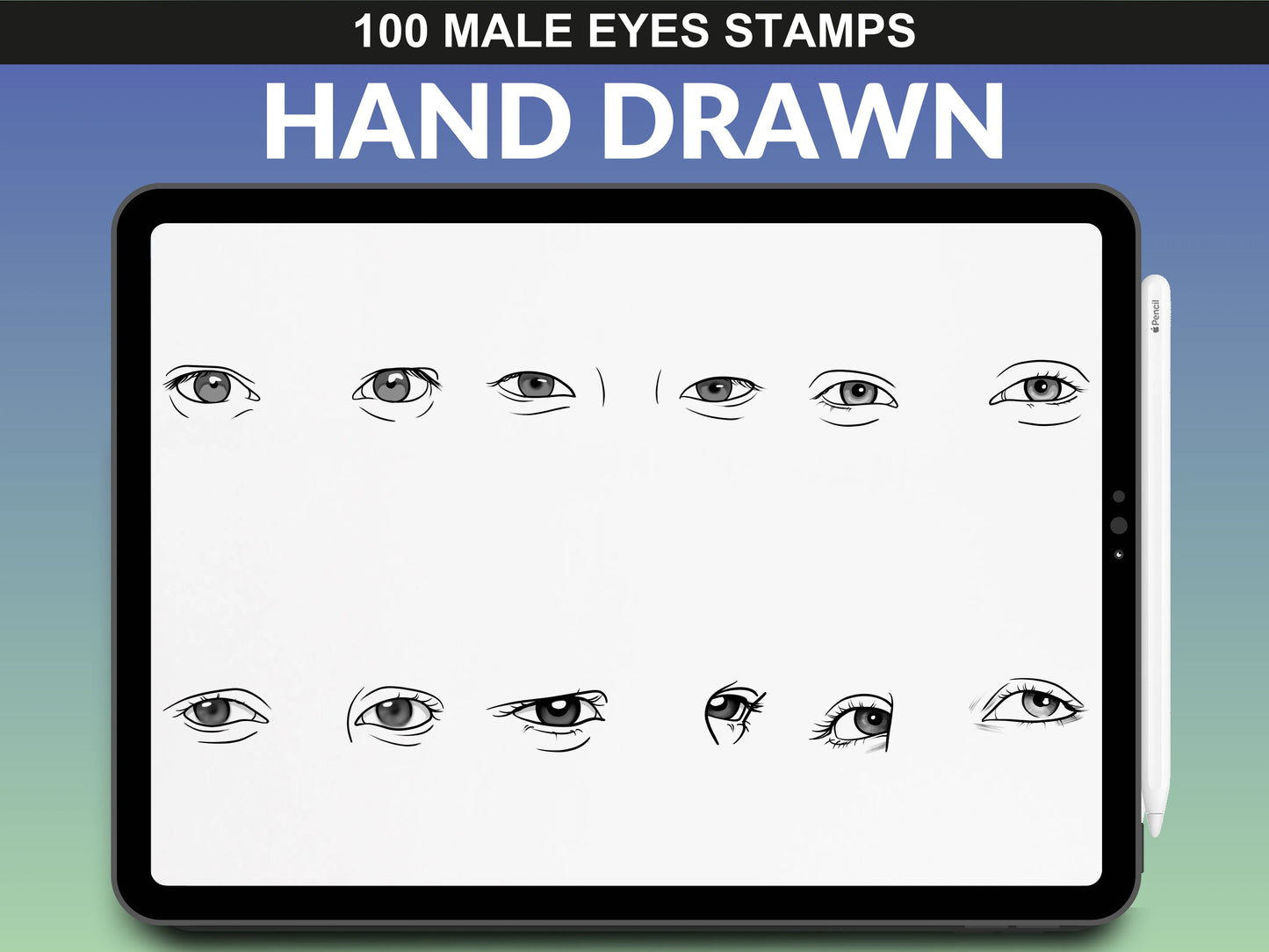 FUPstudio Male Eyes stamp collection - high-quality Procreate eye sketches.