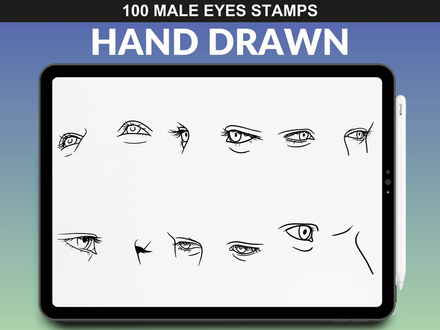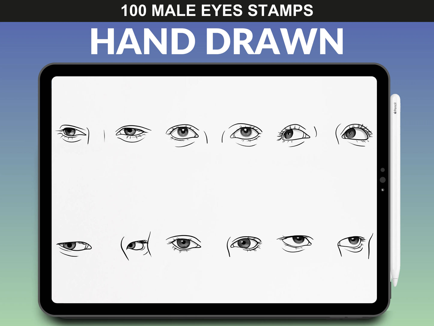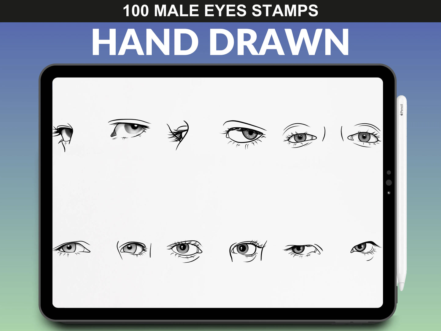 FUPstudio Male Eyes stamp collection - high-quality Procreate eye sketches.
