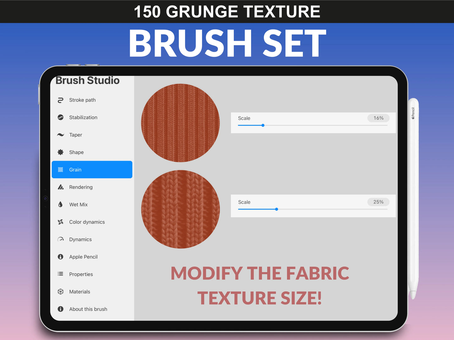 - 150 Grunge Textures Procreate Brush Set