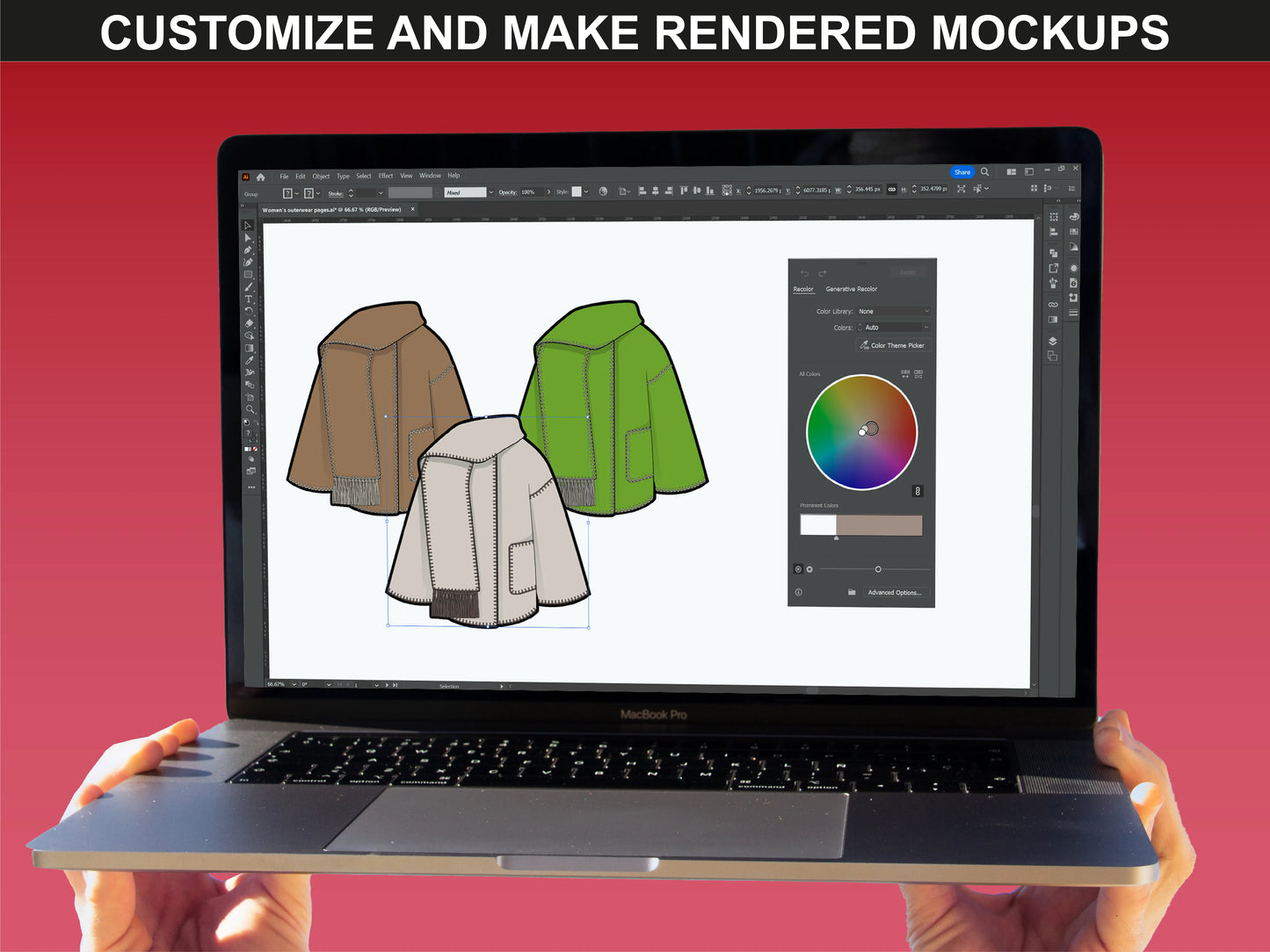 Color customization of Outerwear Mockups V2 by FUPstudio using Adobe Illustrator tools