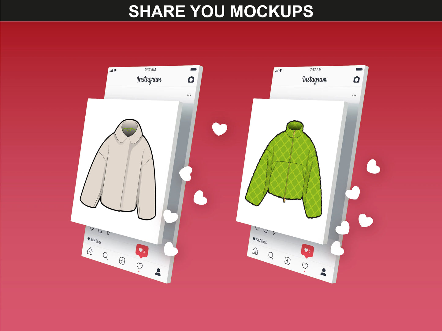 Social media preview using FUPstudio Outerwear Mockups with quilted and zip-up jackets