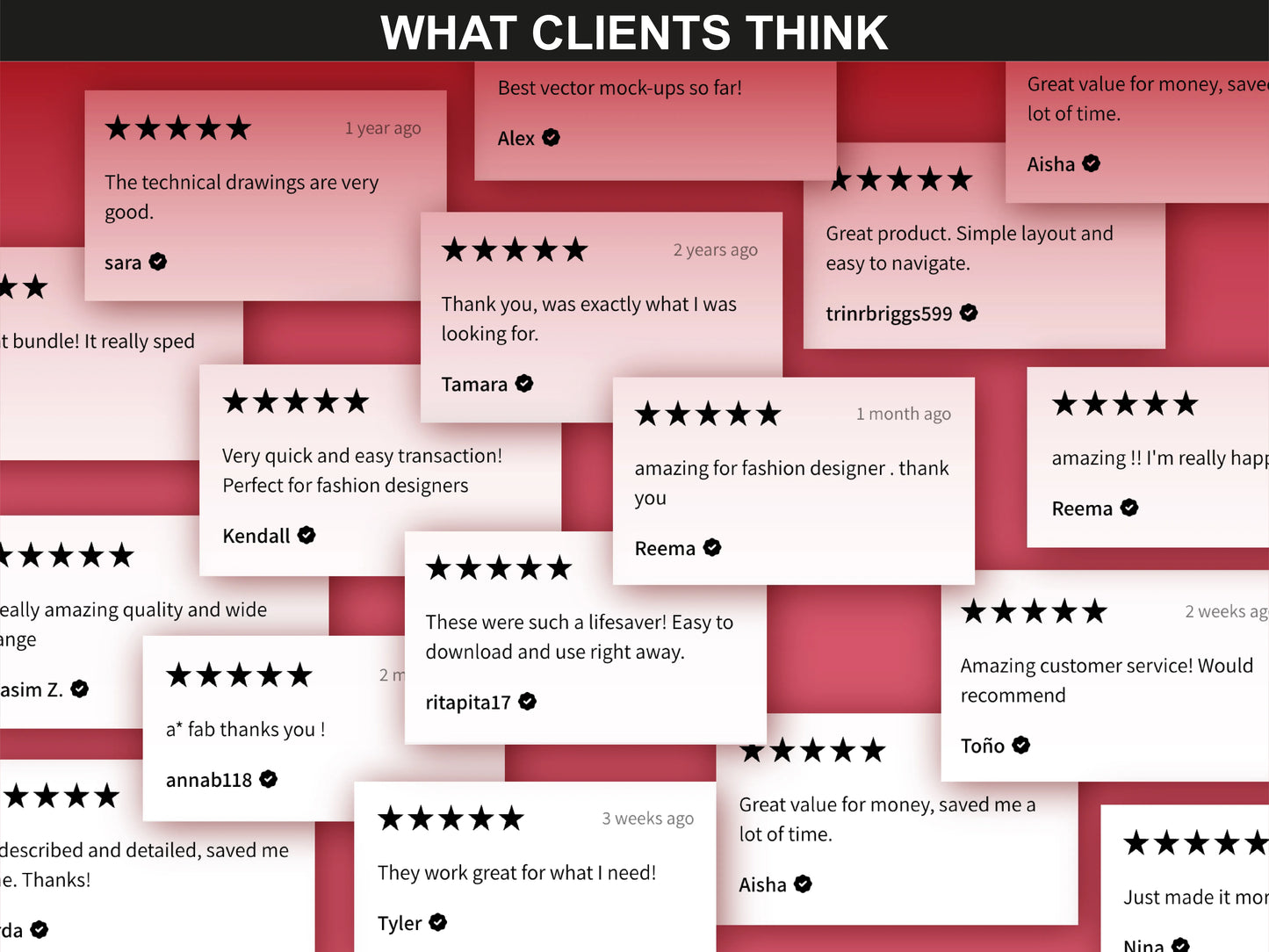 5-star reviews for FUPstudio Outerwear Mockups bundle from satisfied fashion designers